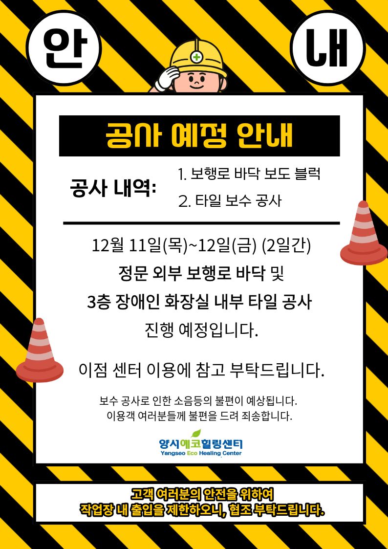 양서에코힐링센터 공사 안내 (외부 보행로 보도 블럭, 내부 타일 보수 공사)